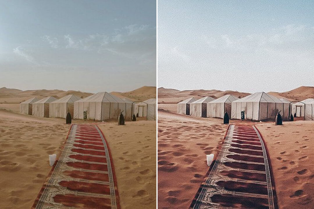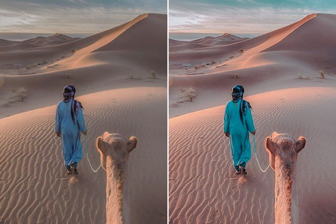 Capture the warm, earthy beauty of the desert with the Desert Camel Preset Collection. These presets enhance soft browns, sandy tans, and golden tones, creating a natural, sun-kissed aesthetic. Perfect for travel, landscape, and lifestyle photography, the Desert Camel Preset Collection adds depth and warmth to your photos with just one click, evoking the serene beauty of the desert landscape.